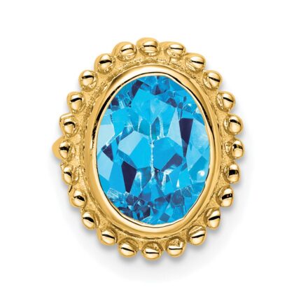 14k 9x6mm Pear Blue Topaz Beaded Edge Chain Slide