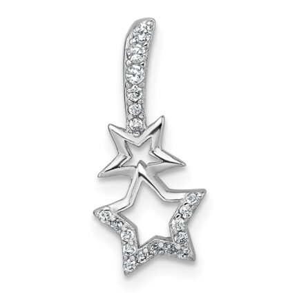 Sterling Silver Rhodium-plated Polished CZ Shooting Stars Chain Slide Pendant