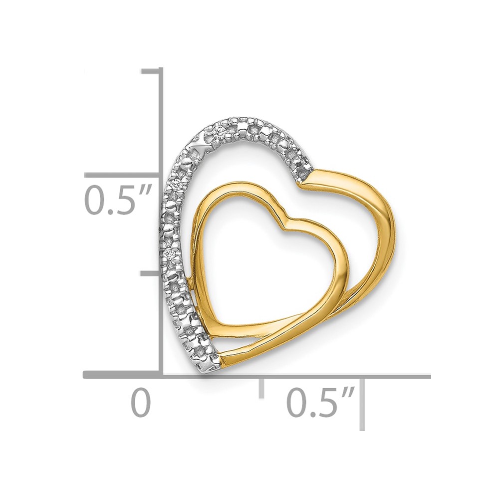 14k White Gold .01 carat Diamond Double Heart Chain Slide