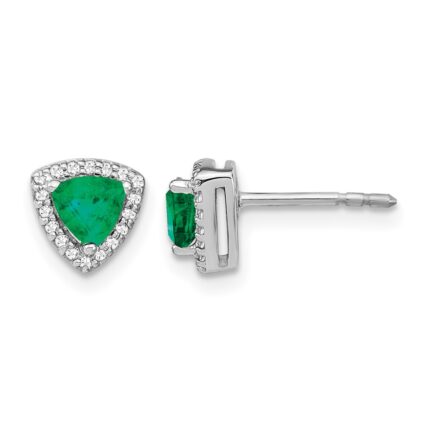 14k White Gold 4.5mm Trillion Emerald and Diamond Halo Post Earrings