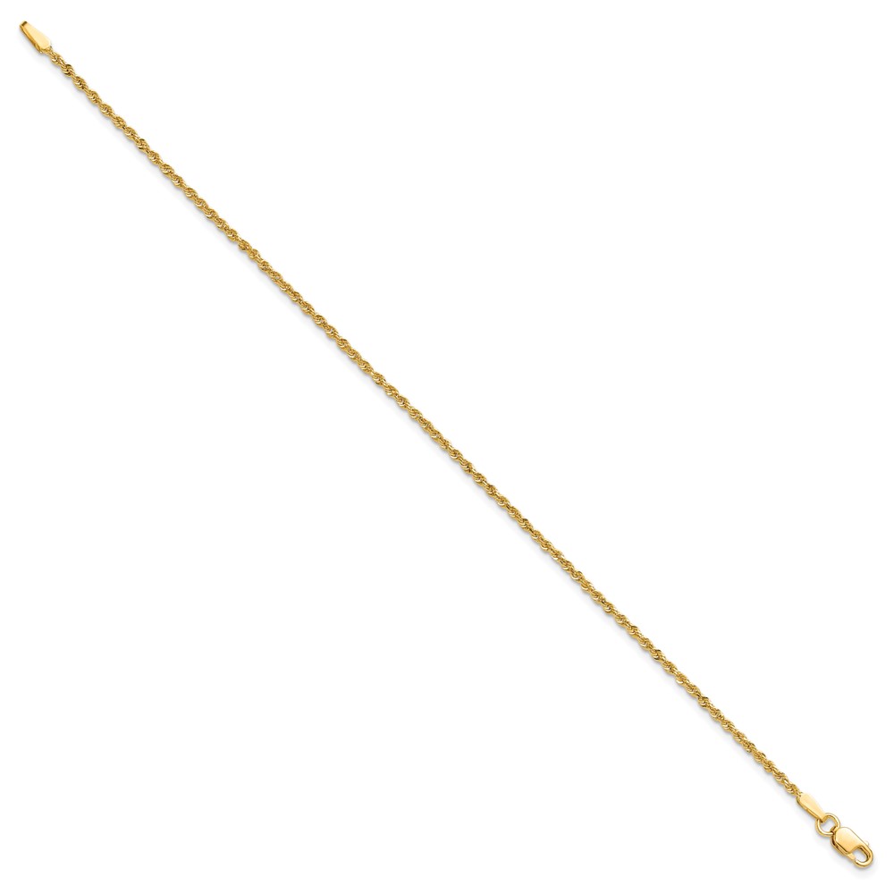 14K 2mm Diamond-cut Rope with Lobster Clasp Anklet
