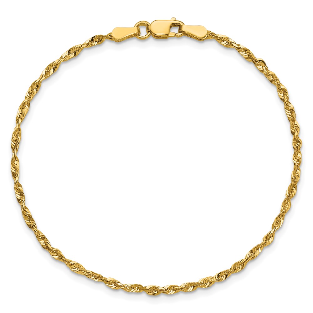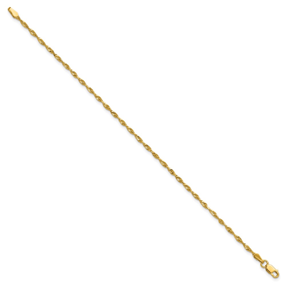14K 2.25mm Diamond-cut Rope with Lobster Clasp Anklet