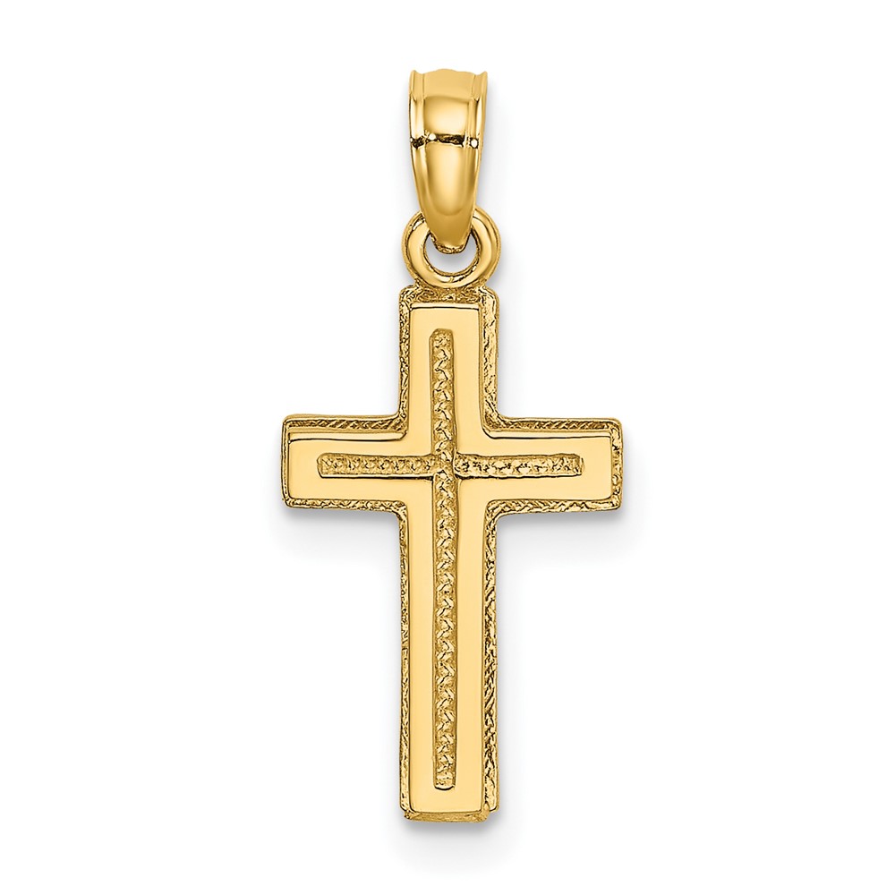 10K 2-D Polished Textured Cross Charm