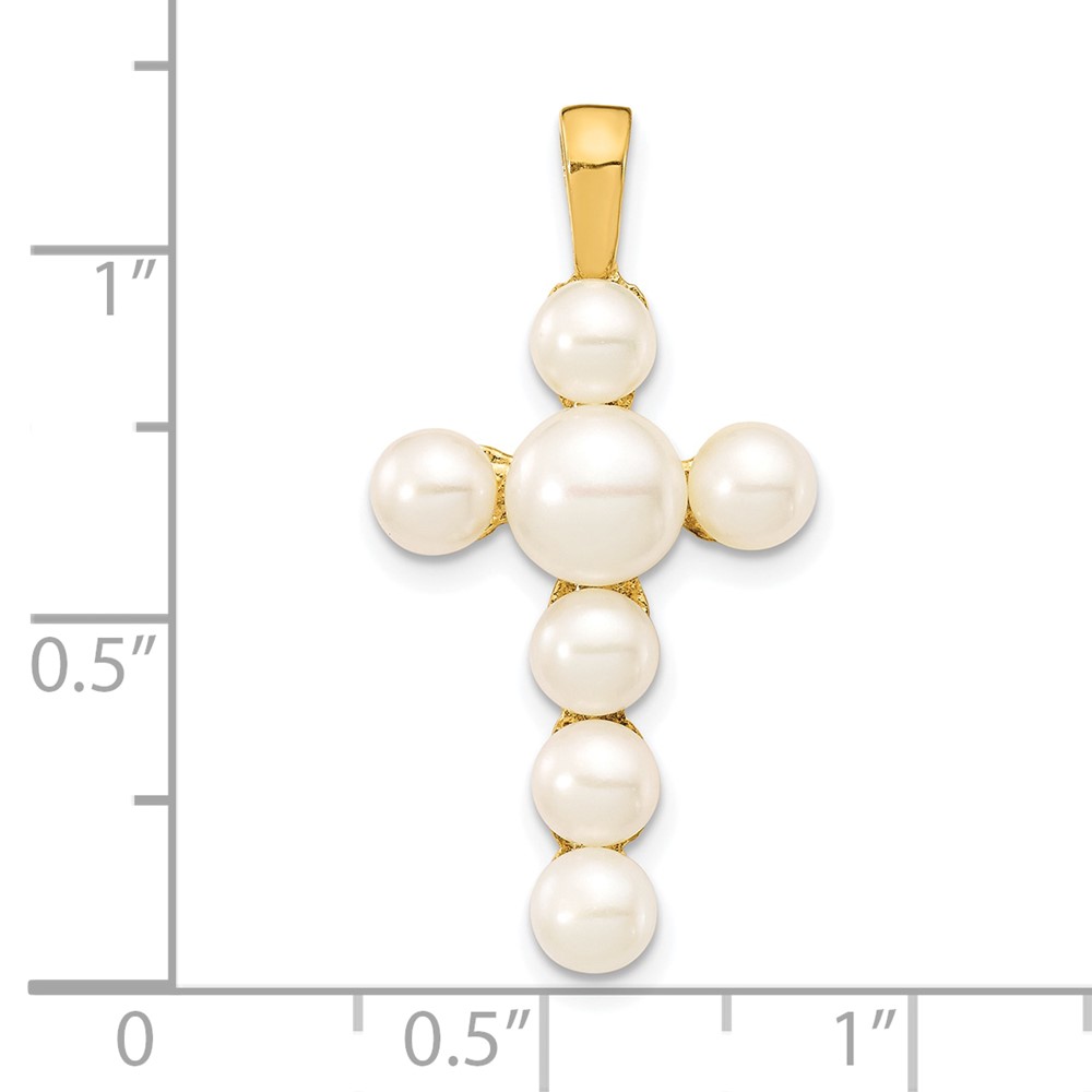 10K 4-6mm White Button Freshwater Cultured Pearl Cross Pendant
