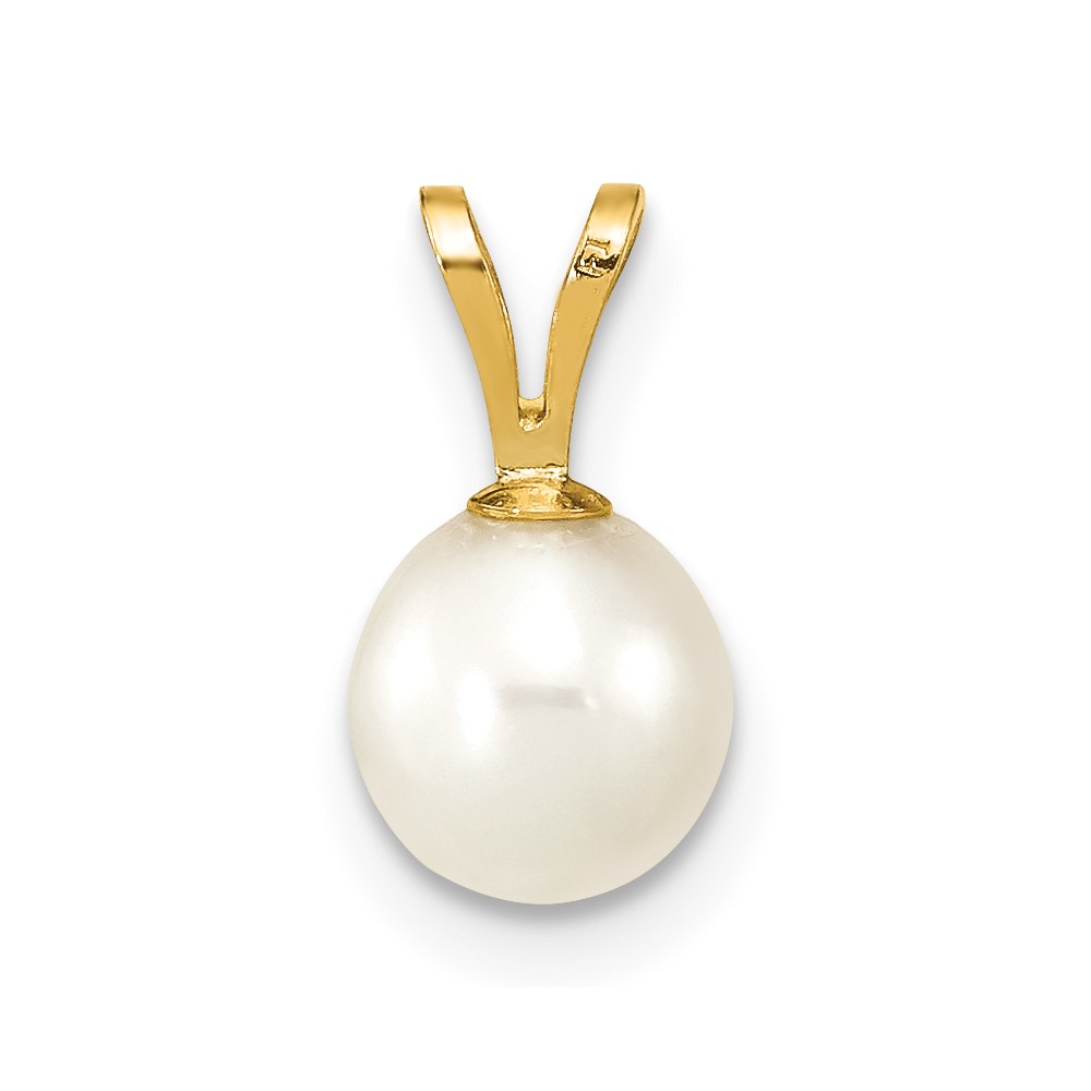 10K 6-7mm White Round Freshwater Cultured Pearl Pendant