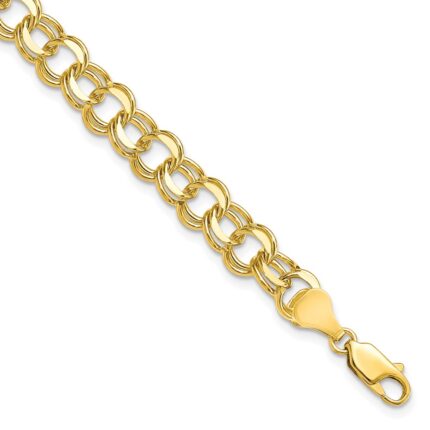 10k 7in 6.5mm Hollow Diamond-cut Double Link Charm Bracelet