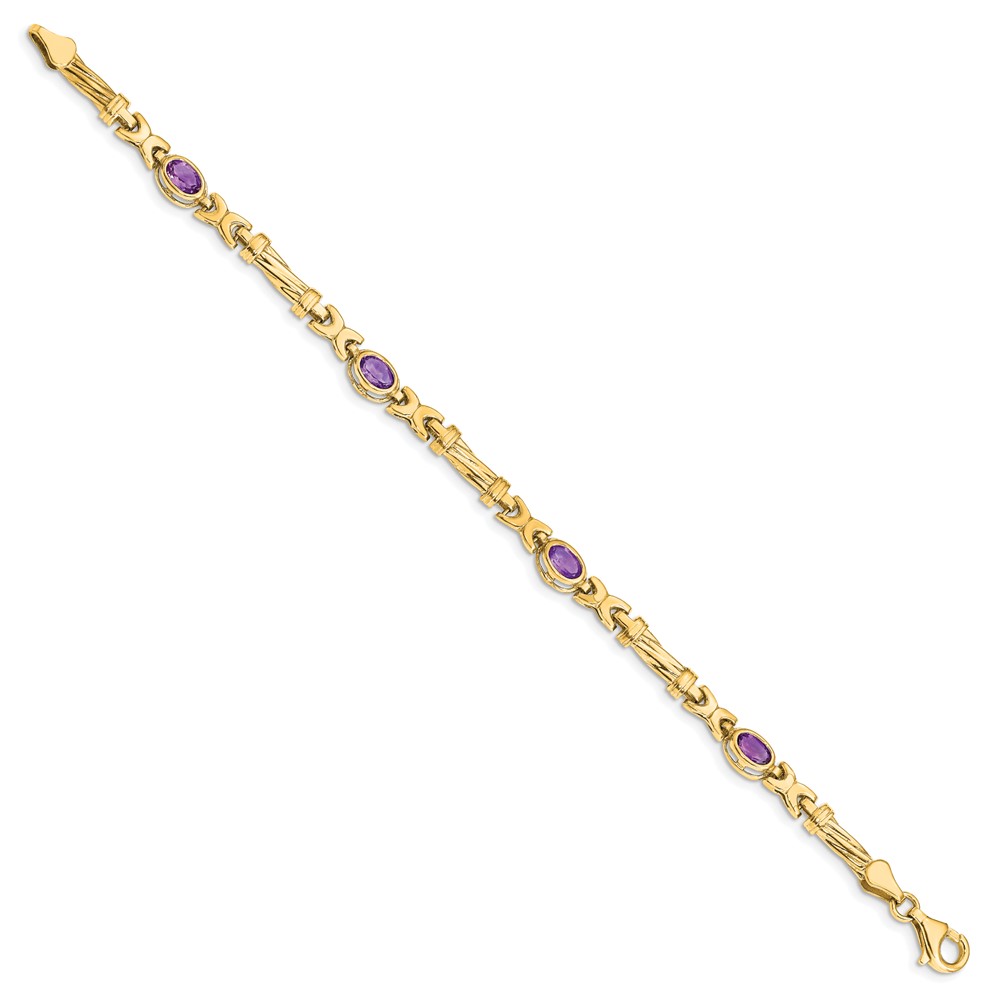 14k White Gold Complete Oval Amethyst Fancy Link 7 inch Bracelet