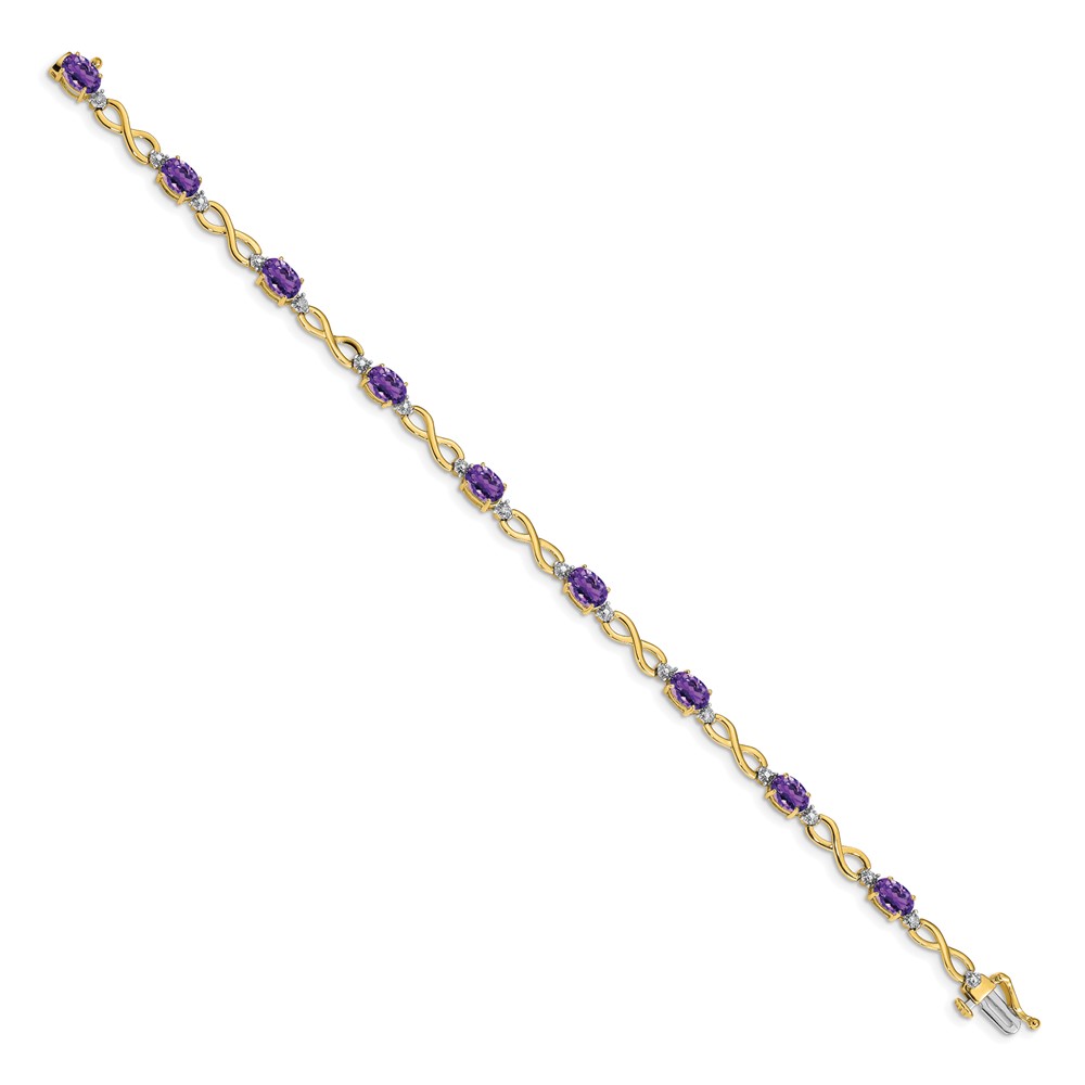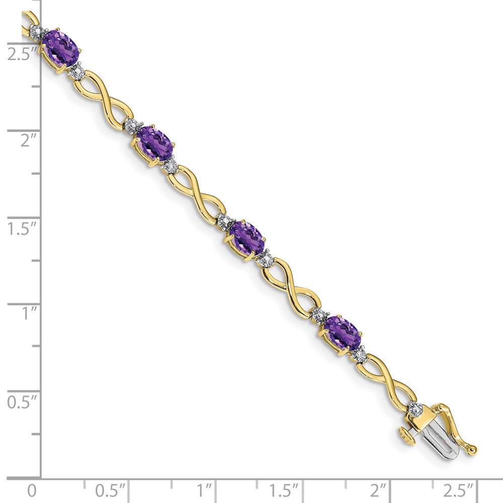 14k Complete Oval Amethyst and Diamond Infinity Link 7 inch Bracelet