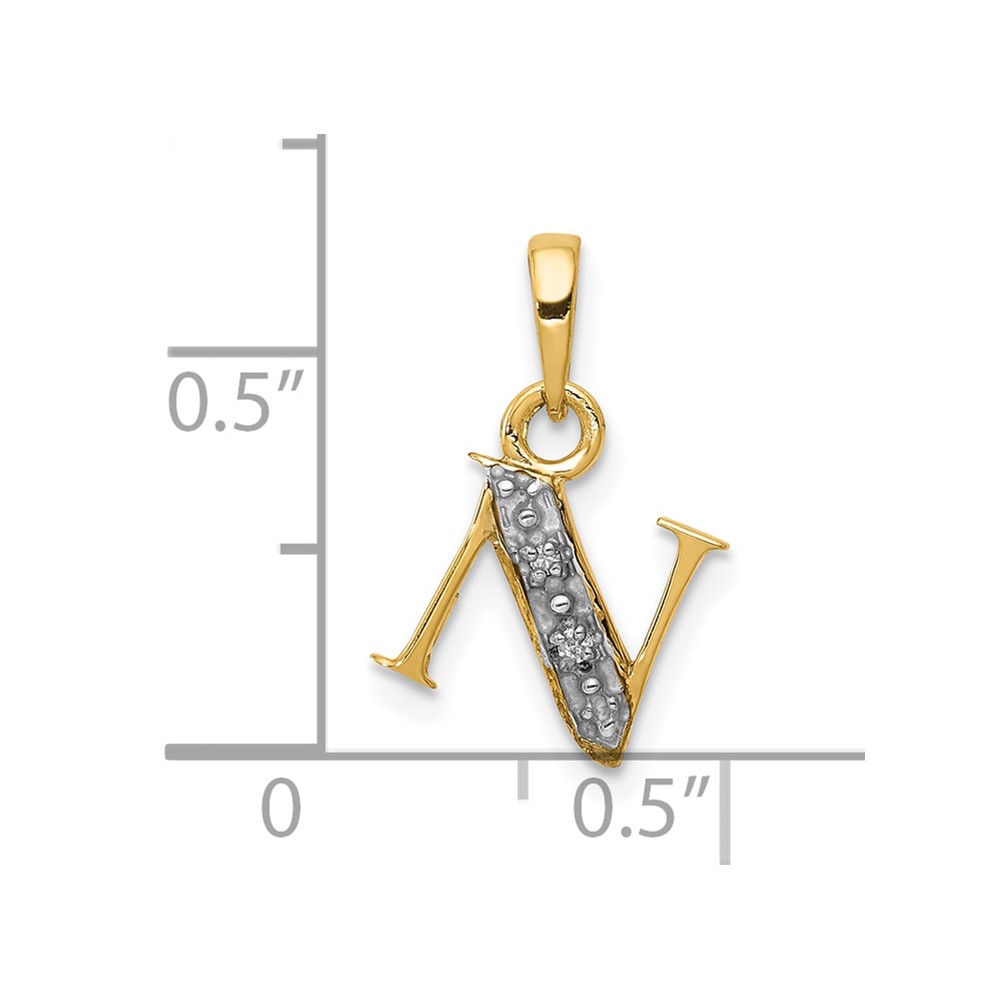 10K and Rhodium Diamond Initial N Charm