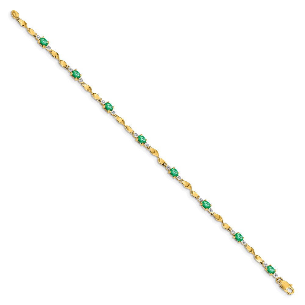 14k White Gold Complete Diamond and Oval Emerald Twisted Link 7 inch Bracelet