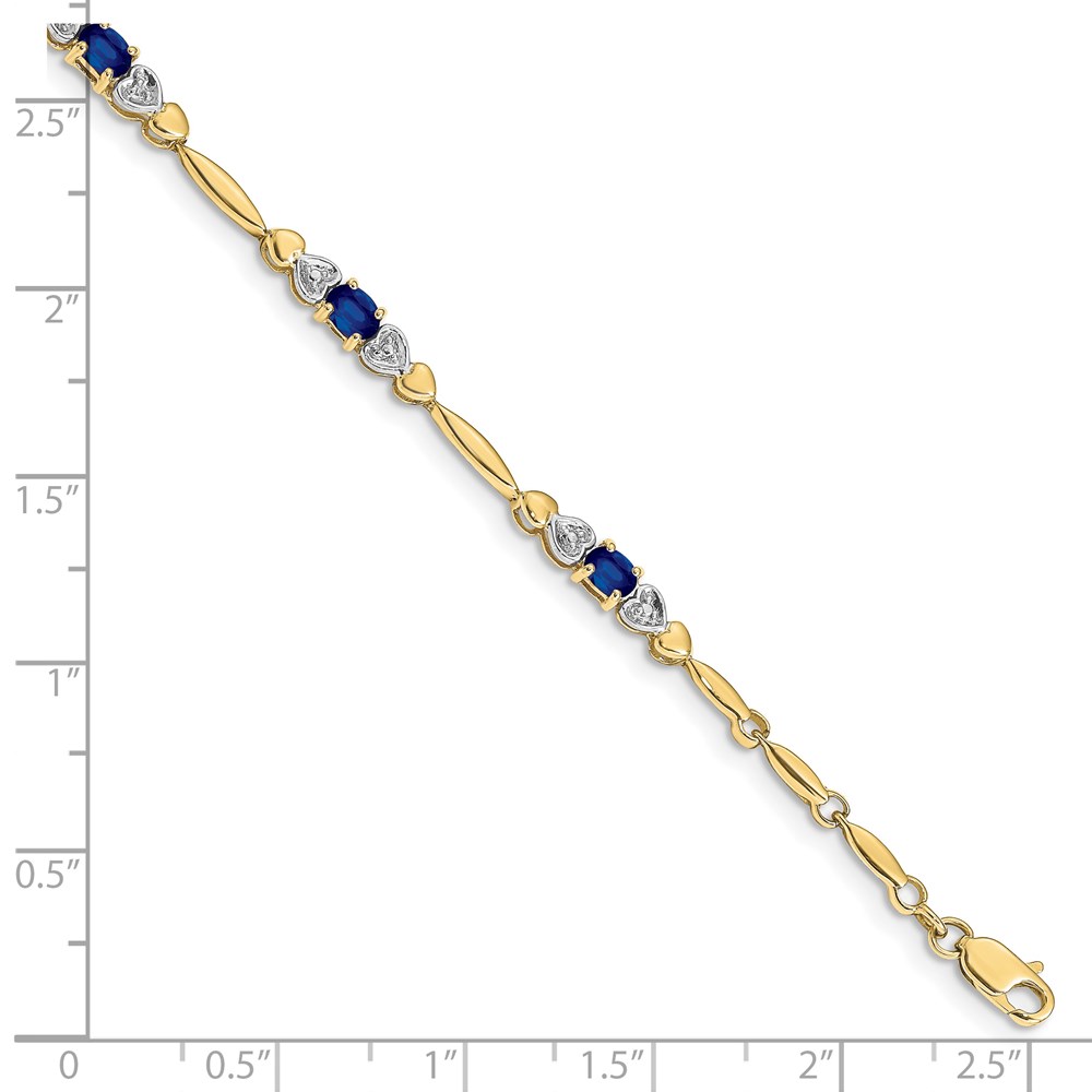 14k White Gold Complete Diamond and Oval Sapphire Heart Design 7 inch Bracelet