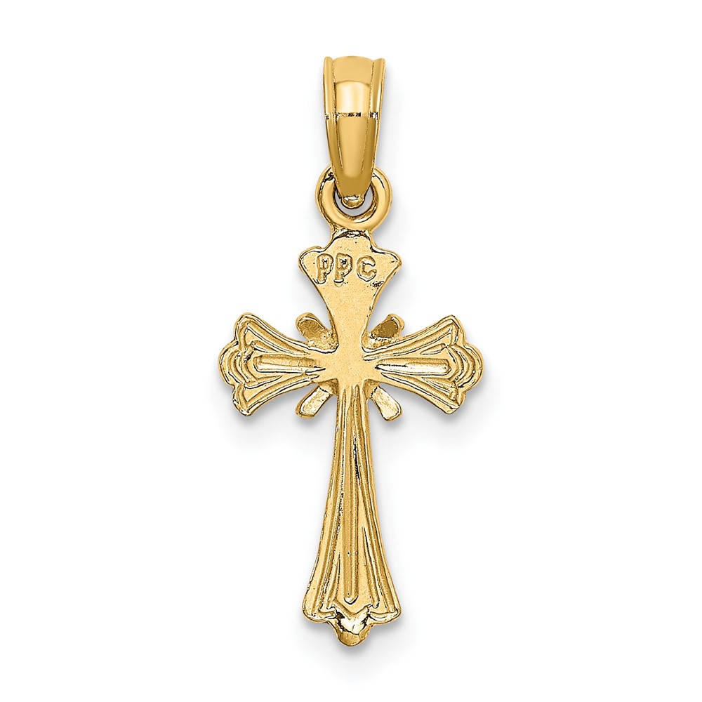 14k White Gold 1/10 carat Diamond Filigree Budded Cross Pendant