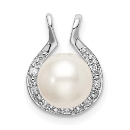 14K White Gold Polished 1/20 carat Diamond and White Freshwater Cultured Pearl Chain Slide