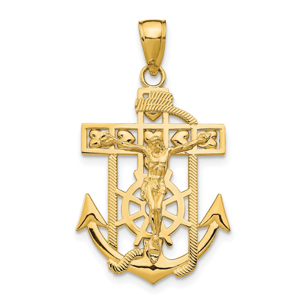 10K Gold Polished & Textured Mini Mariners Crucifix Pendant