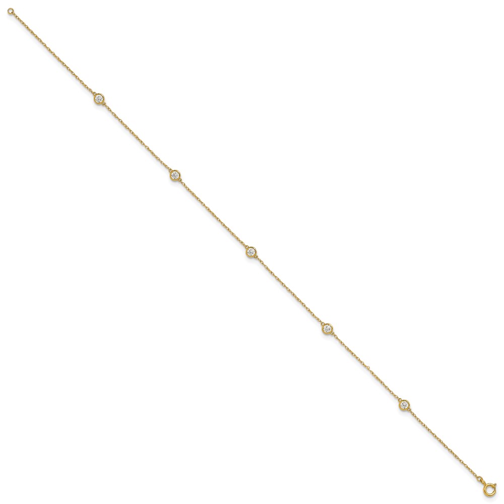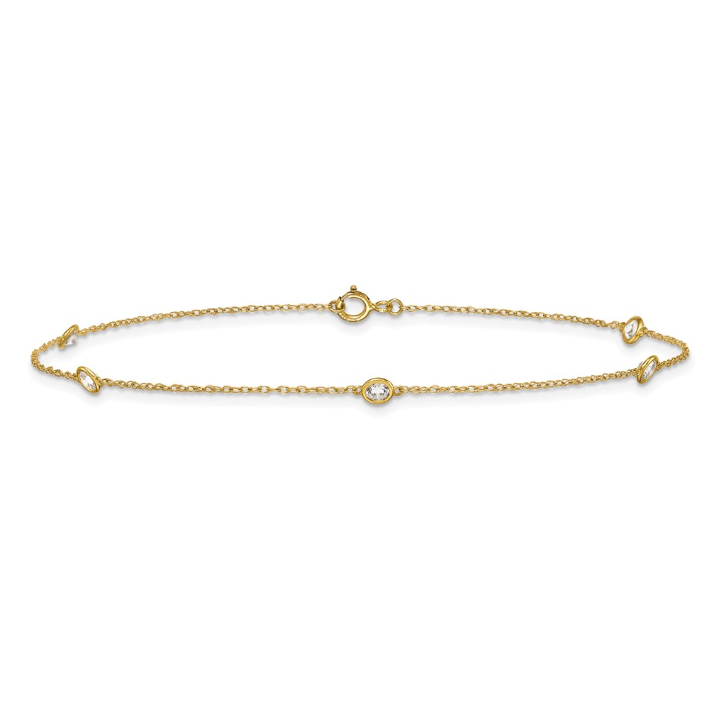 10k Polished Bezel-set 3.8mm CZ 5-Station Anklet