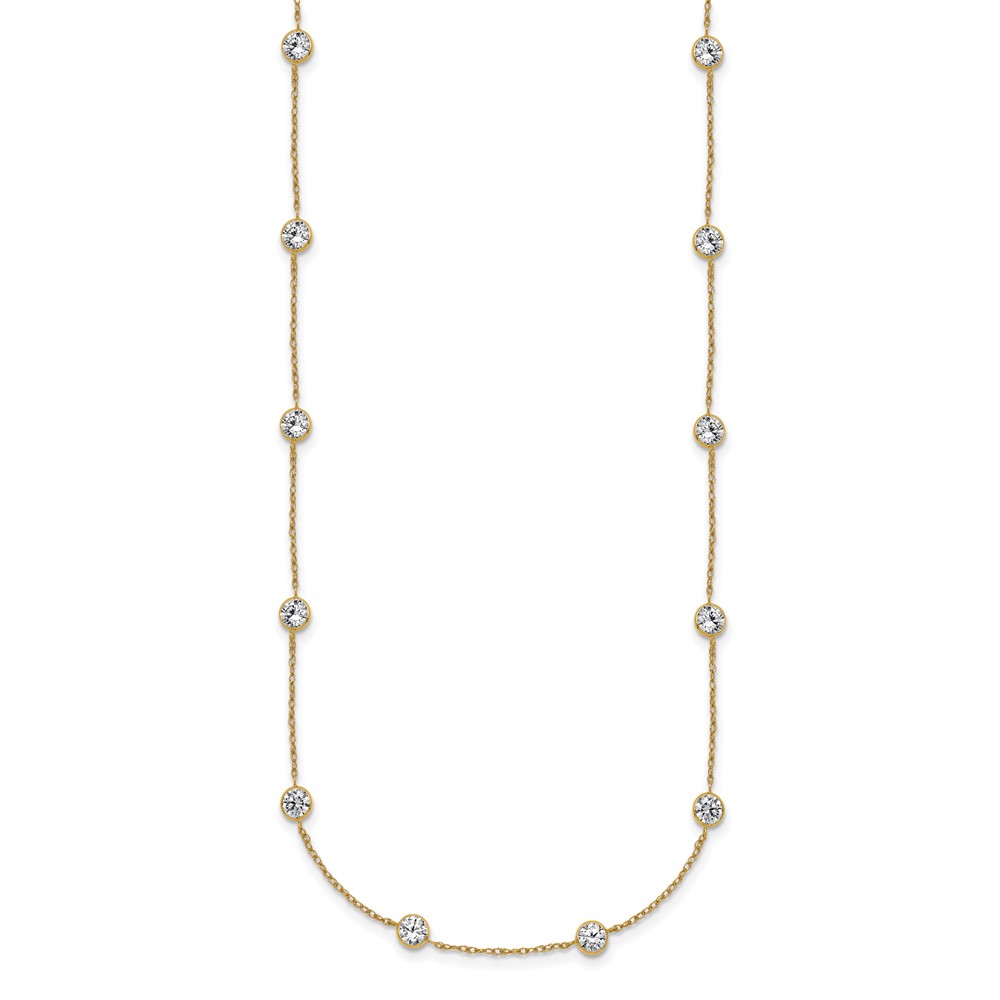 10k Polished Bezel-set Round CZ 14-Station 21.Necklace