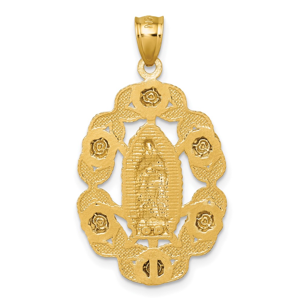 10k Polished Diamond-cut Our Lady of Guadalupe with Flowers Medal Pendant