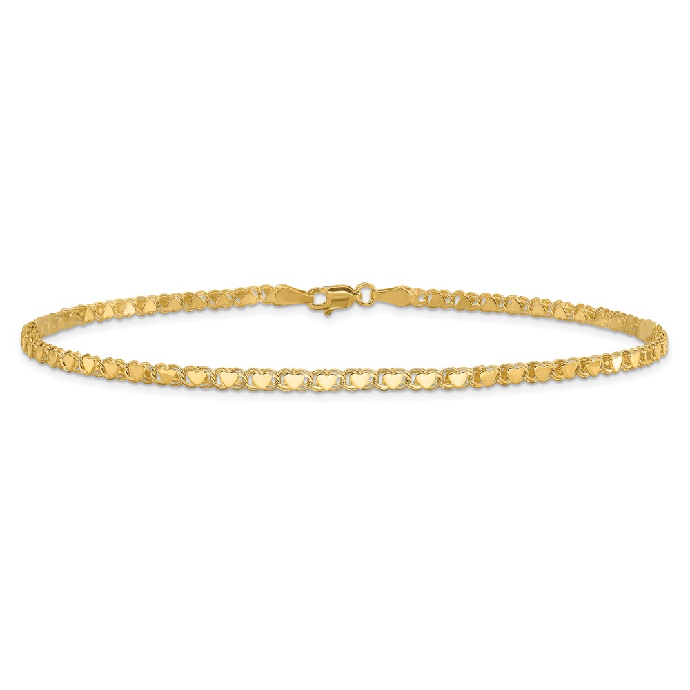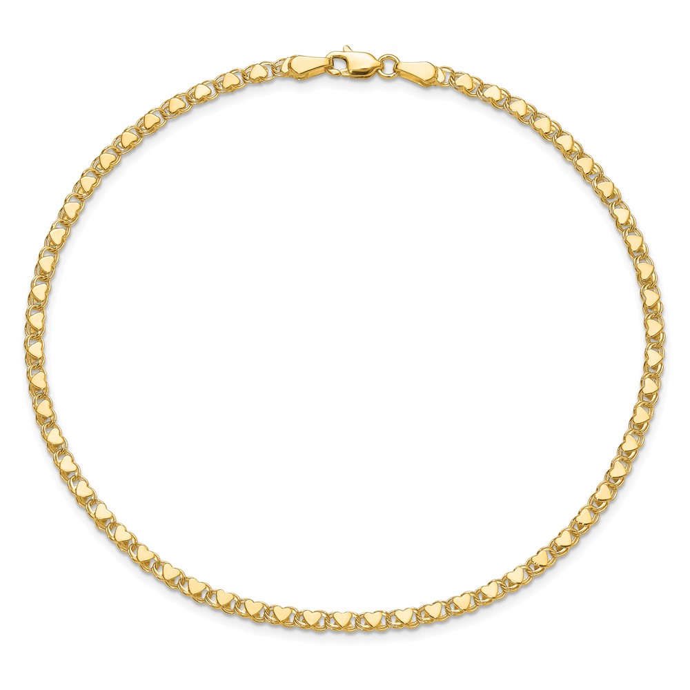 10k Polished Double-Sided 2.6mm Heart Links Anklet