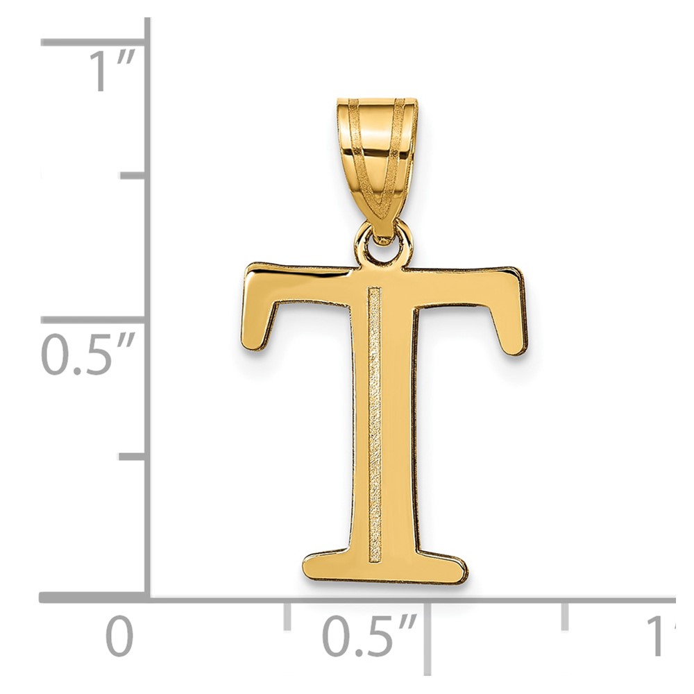 10K Polished Etched Letter T Initial Pendant