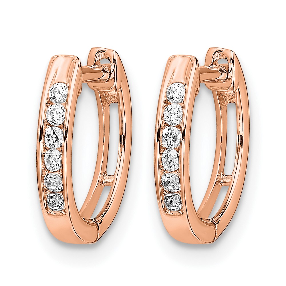 10k Rose Gold Polished Diamond Hinged Hoop Earrings