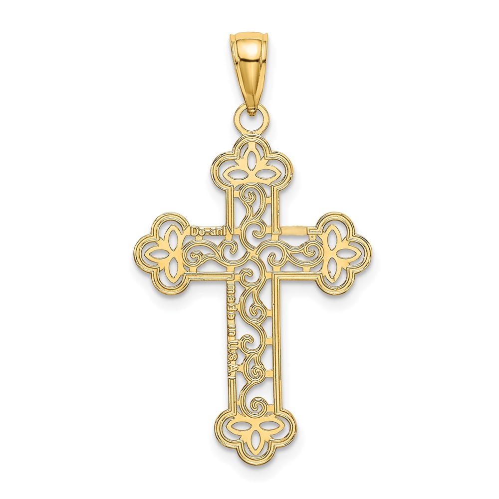 14k White Gold Polished 1/10 carat Diamond Budded Cross Chain Slide
