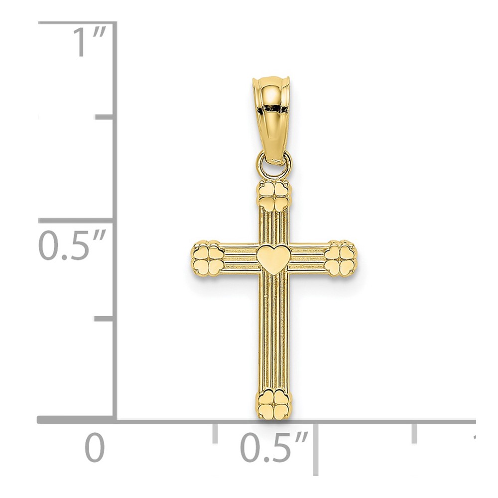 10K Polished and Engraved Cross W/ Heart Charm