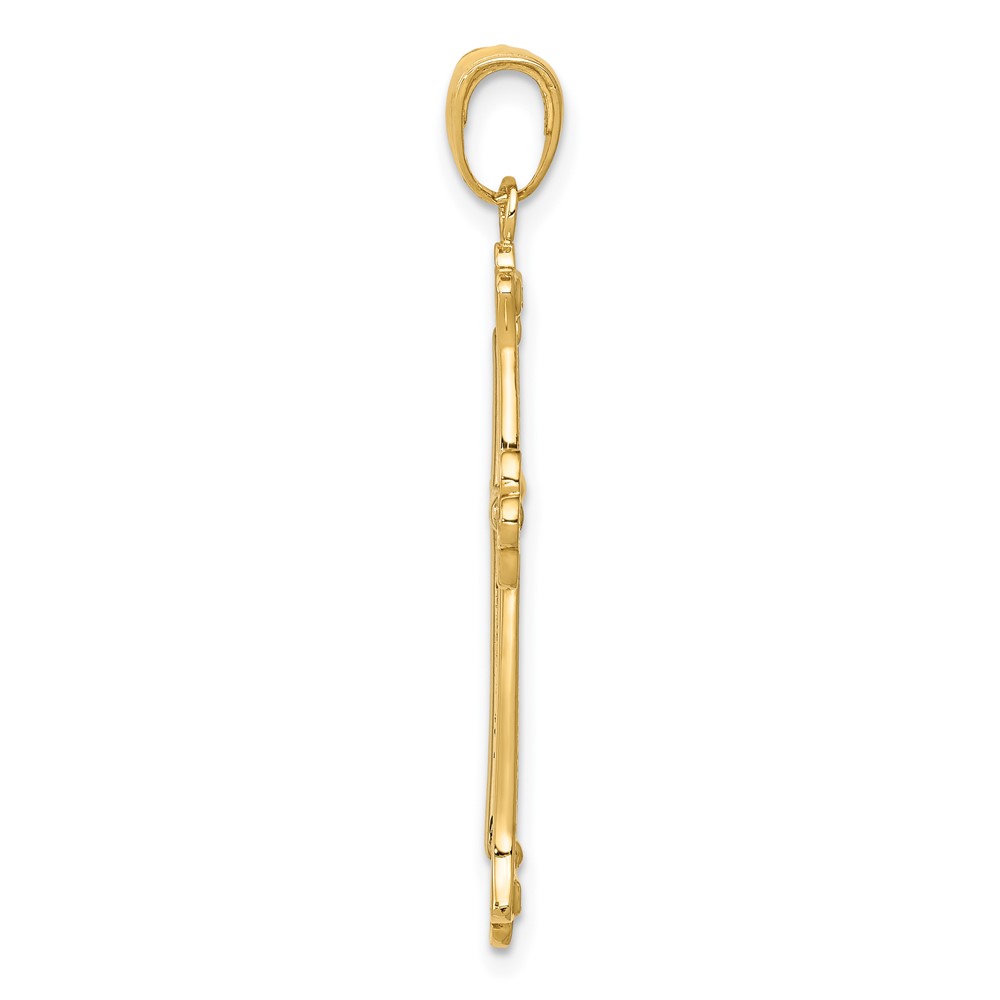 10K Two-tone Cross in Budded Yellow Cross Frame Pendant