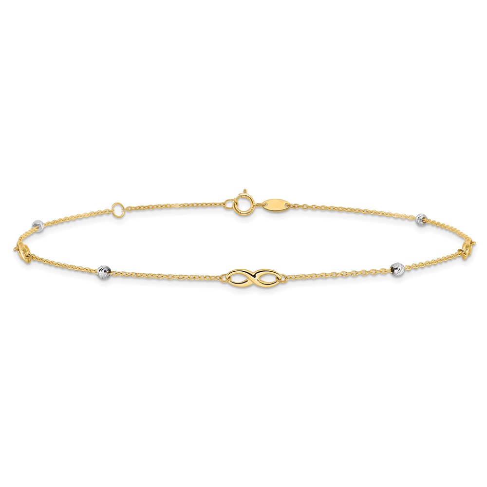 10K Two-Tone Infinity and Diamond-cut Beads Plus Extender – Total Anklet