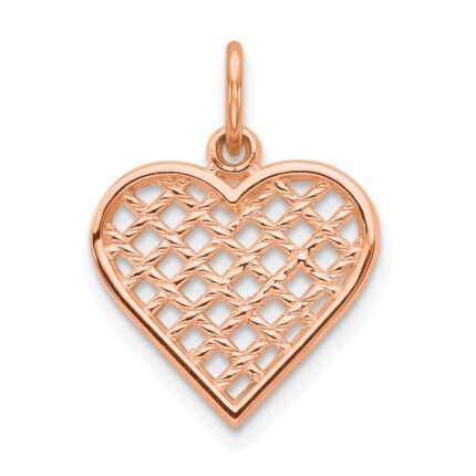 10k w/Rhodium Cut-Out Filigree Flower and Heart Charm