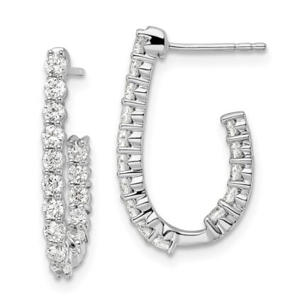 10k w/Rhodium Diamond J-Hoop Post Earrings