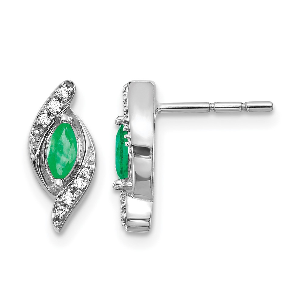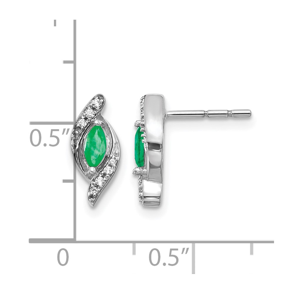 10k White Gold 1/15Ct Diamond and Emerald Earrings