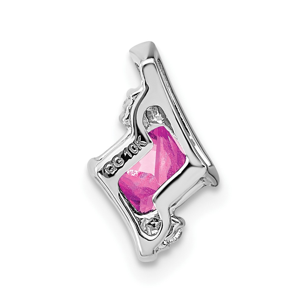 10k White Gold Cushion Cr. Pink Sapphire and Diamond Chain Slide