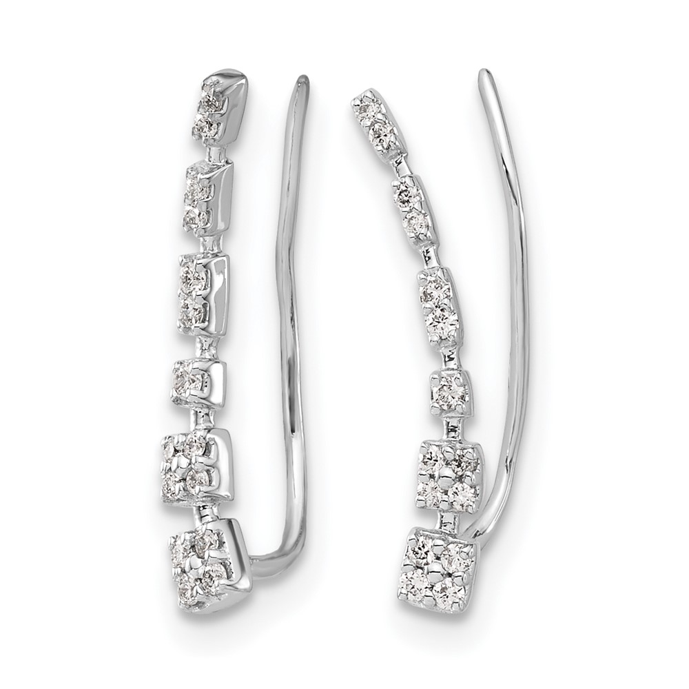14k White Gold 1/6 carat Diamond Graduated Ear Climber Earrings
