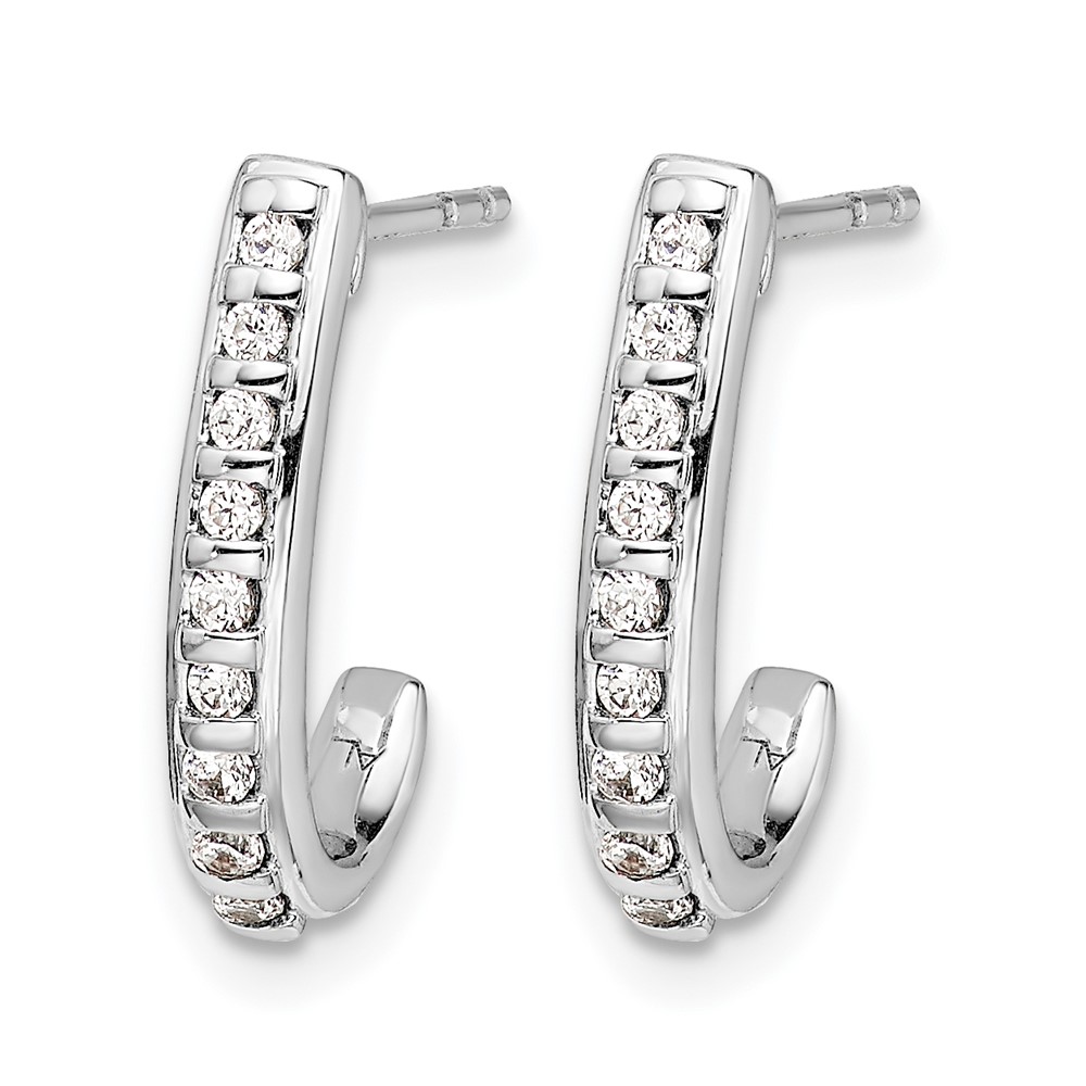 14k and White Rhodium 1/15 carat Diamond J-Hoop Post Earrings