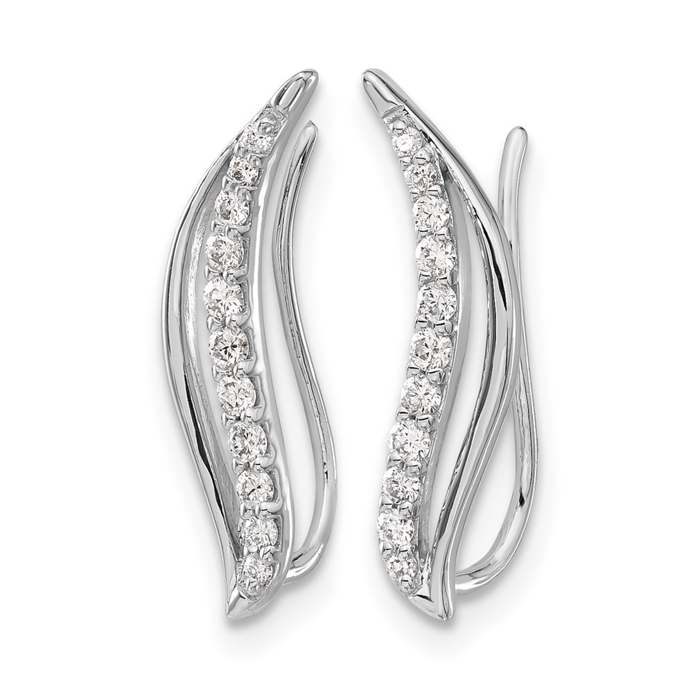 14k White Gold 1/4 carat Diamond Wave Ear Climber Earrings