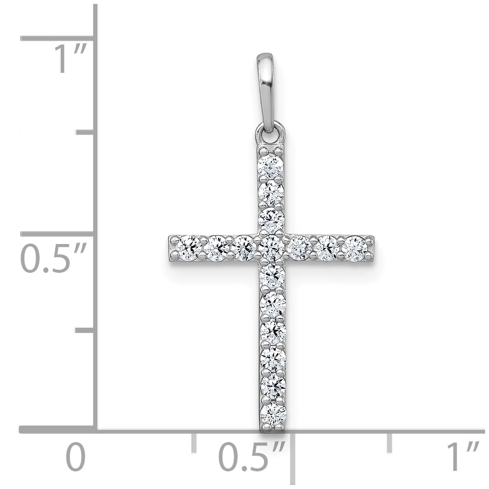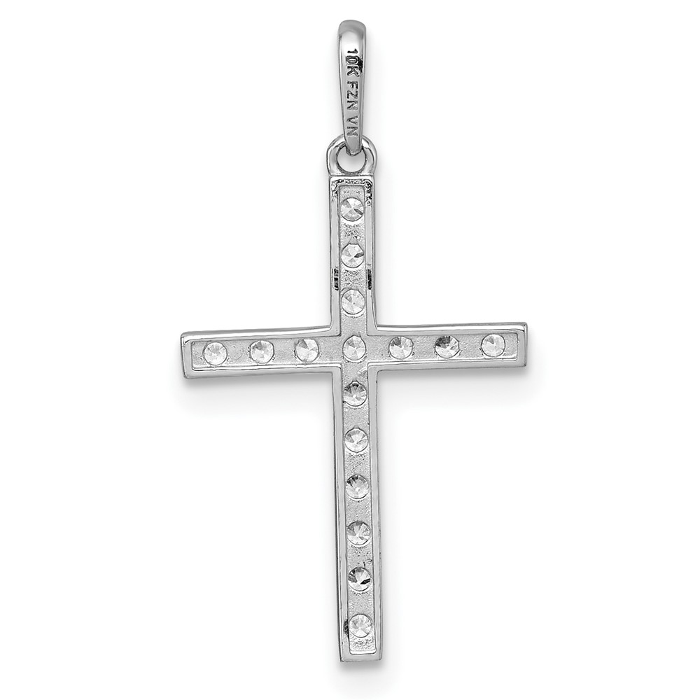 10k White Gold Polished CZ Latin Cross Pendant