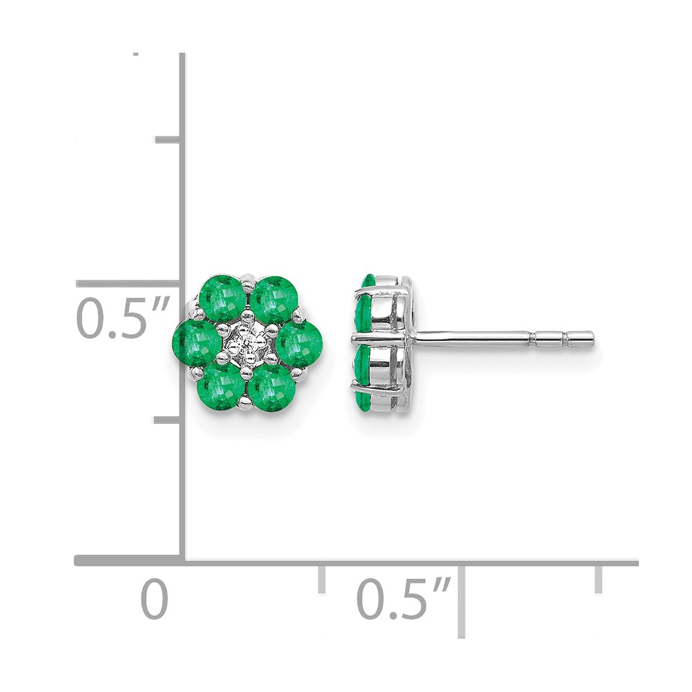 10k White Gold Polished Emerald and Diamond Post Earrings