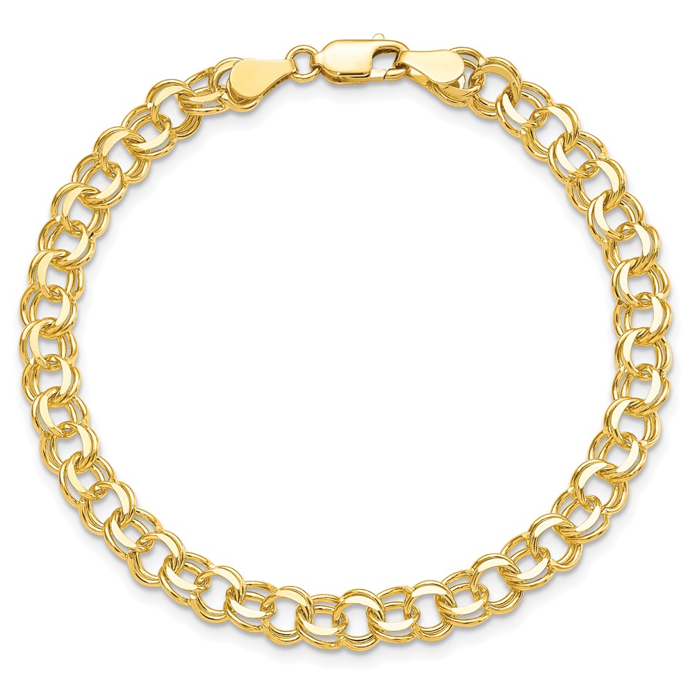 10k 7in 5.5mm Solid Double Link Charm Bracelet