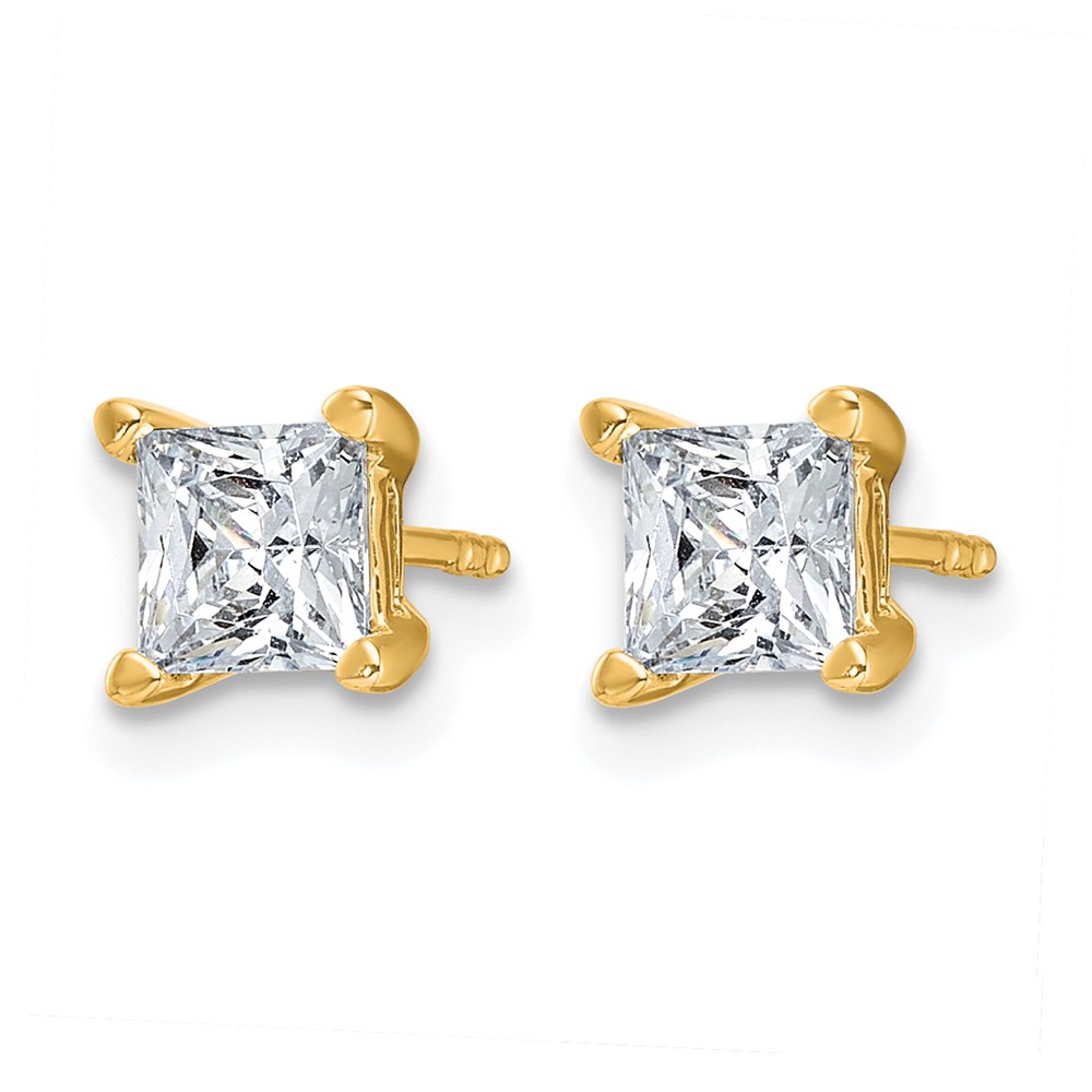 14k 1 1/2 carat Lab Grown Diamond VS+ F+ Princess Complete Four Prong Stud Earrings