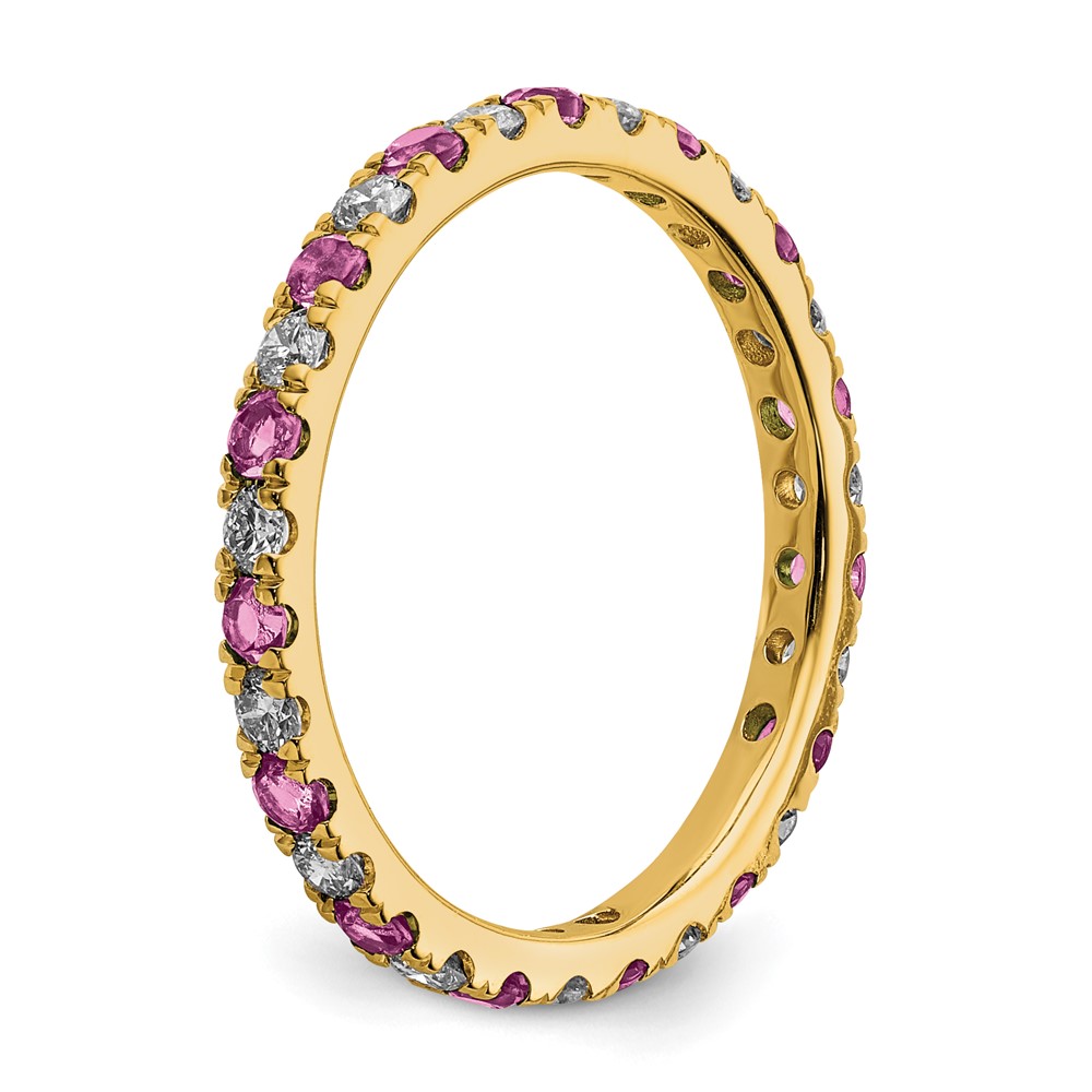 14k 1/2 carat Lab Grown Diamond VS/SI+ G+ and Lab Created Pink Sapphire Size 8.5 Eternity Band