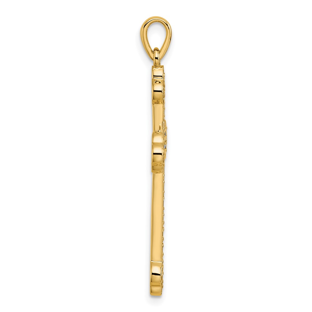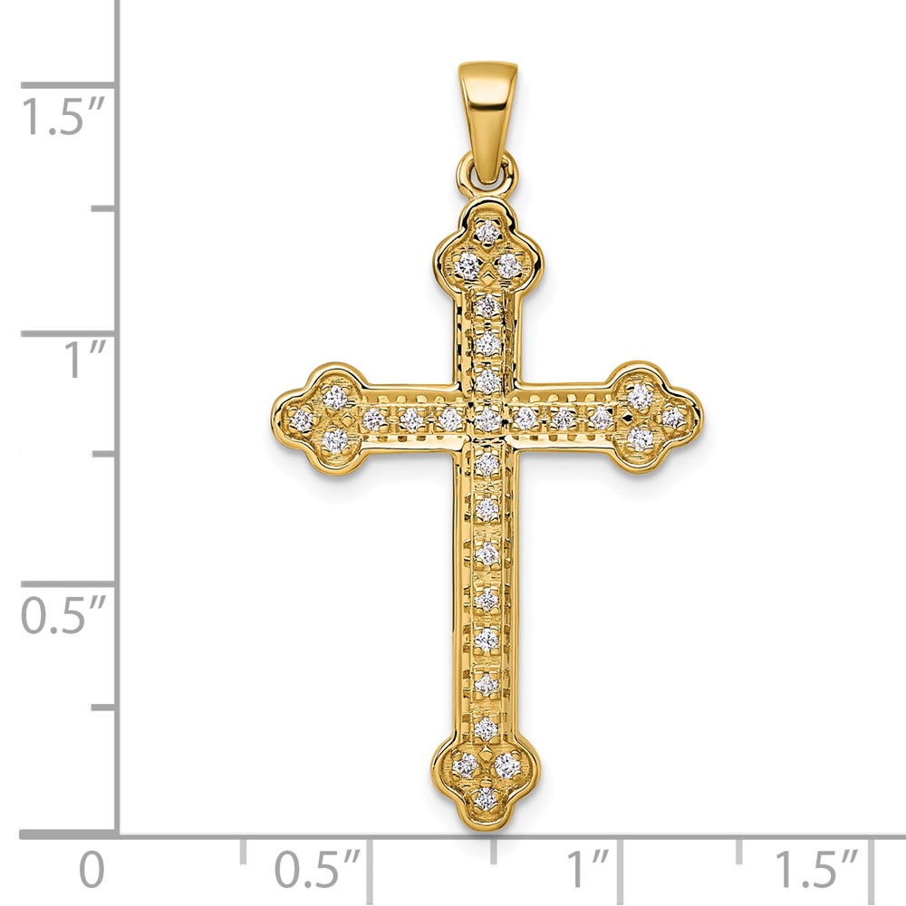 14k White Gold 1/10 carat Diamond Filigree Budded Cross Pendant