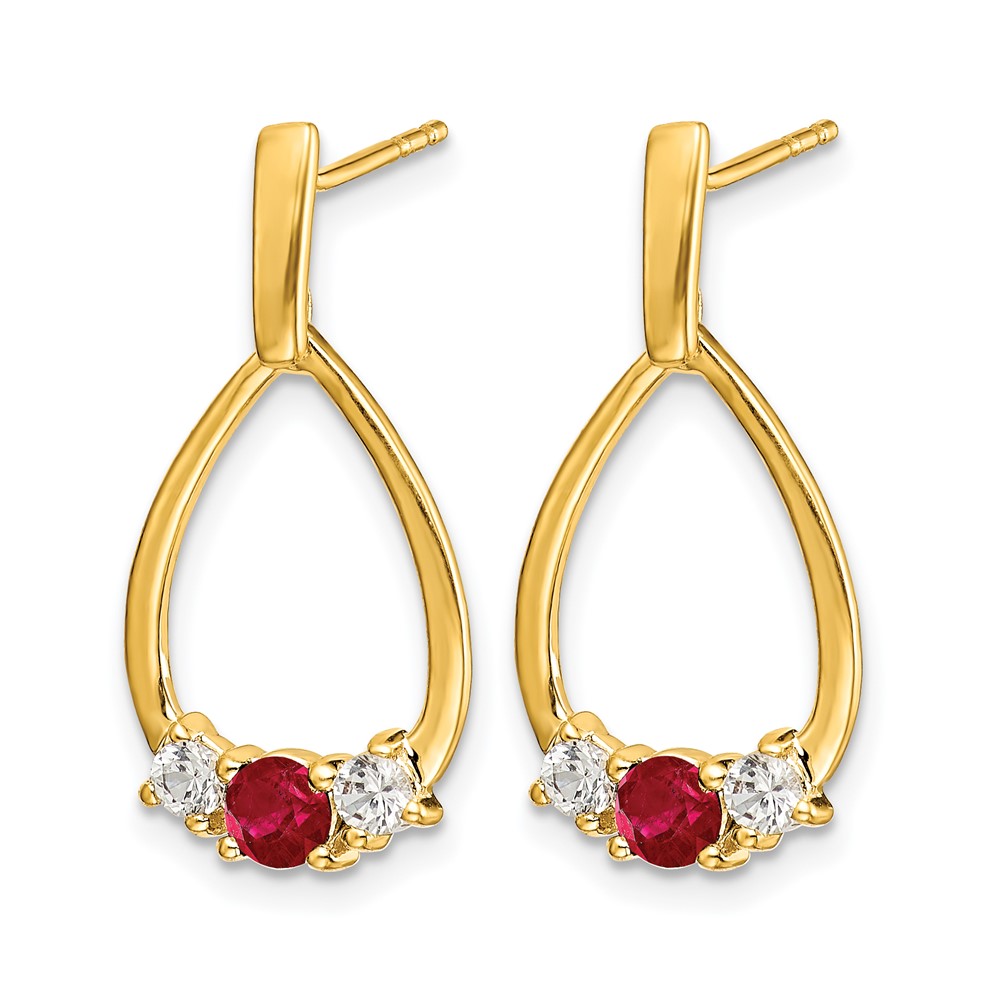 14k 1/4 carat Lab Grown Diamond VS/SI+ G+ and Created Ruby Complete Dangle Teardrop Post Earrings