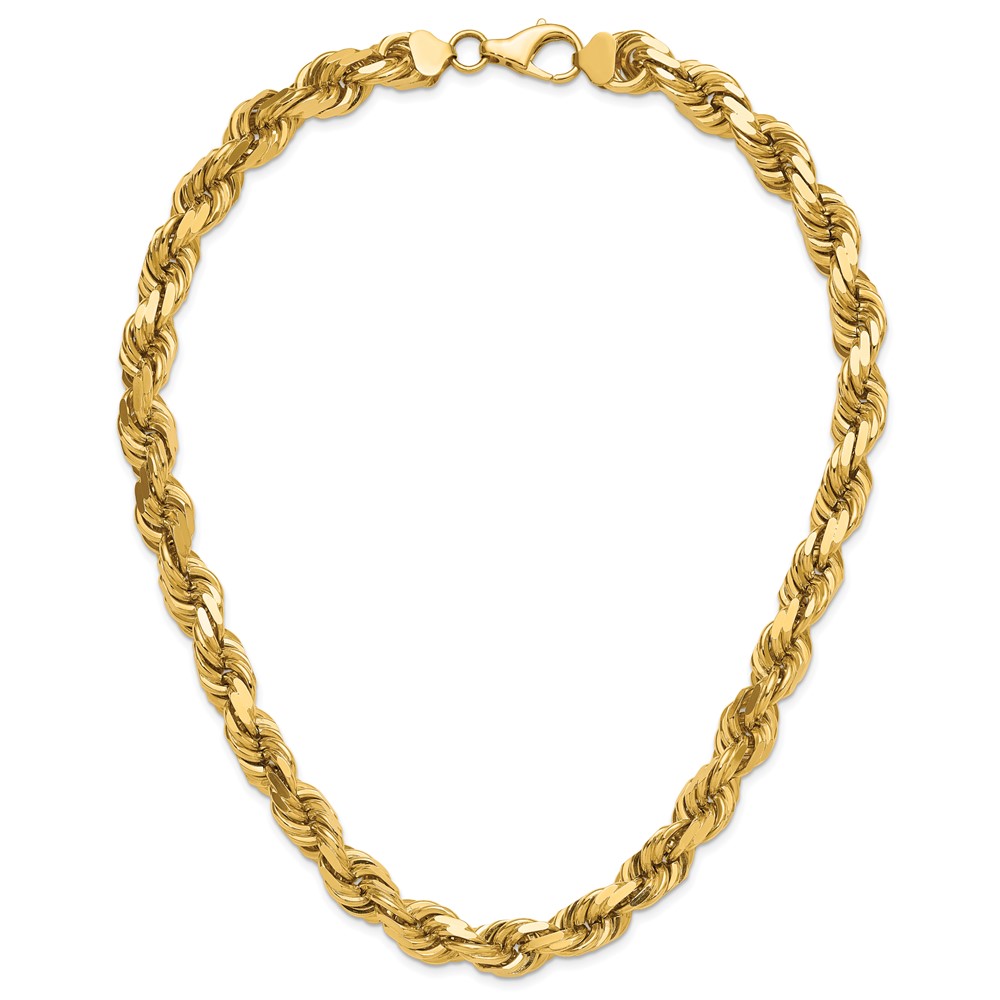 14K 7mm Diamond-cut Rope with Fancy Lobster Clasp Chain