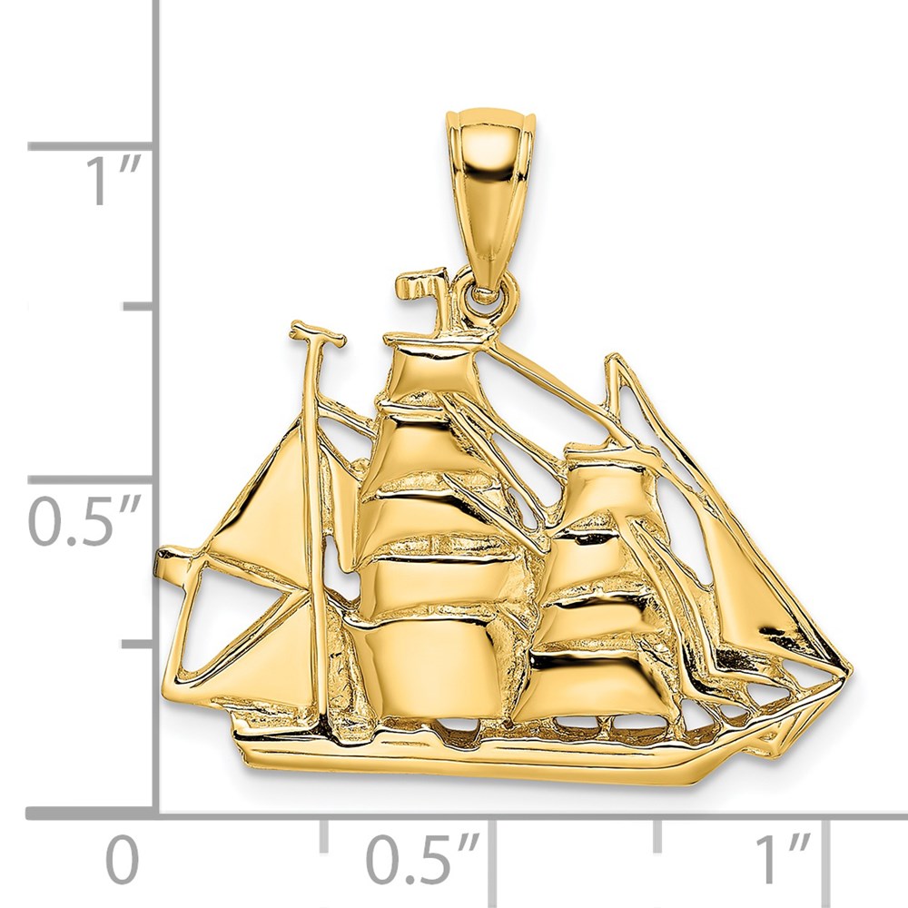 14K 2-D Polished Sailing Ship Charm
