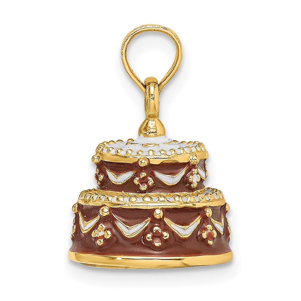 14K 3-D Brown Enameled HAPPY BIRTHDAY Cake Charm