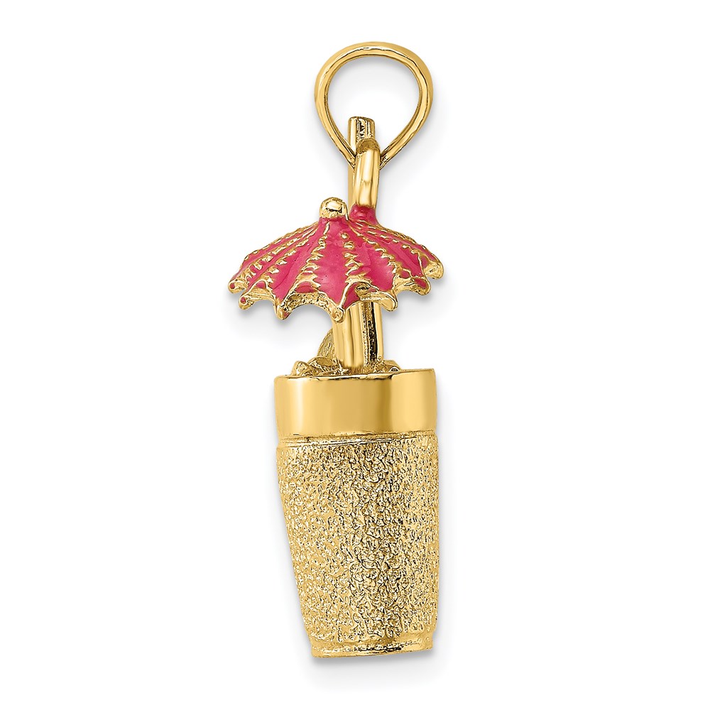 14K 3-D Cocktail Drink with Fuchsia Enameled Umbrella and Lime Charm