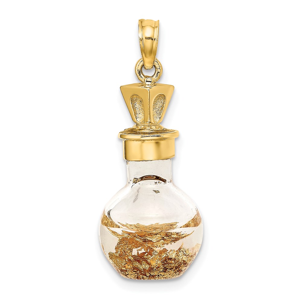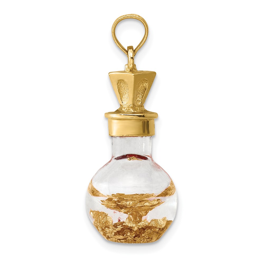 14K 3-D Gold Leaf In Glass Bottle Charm