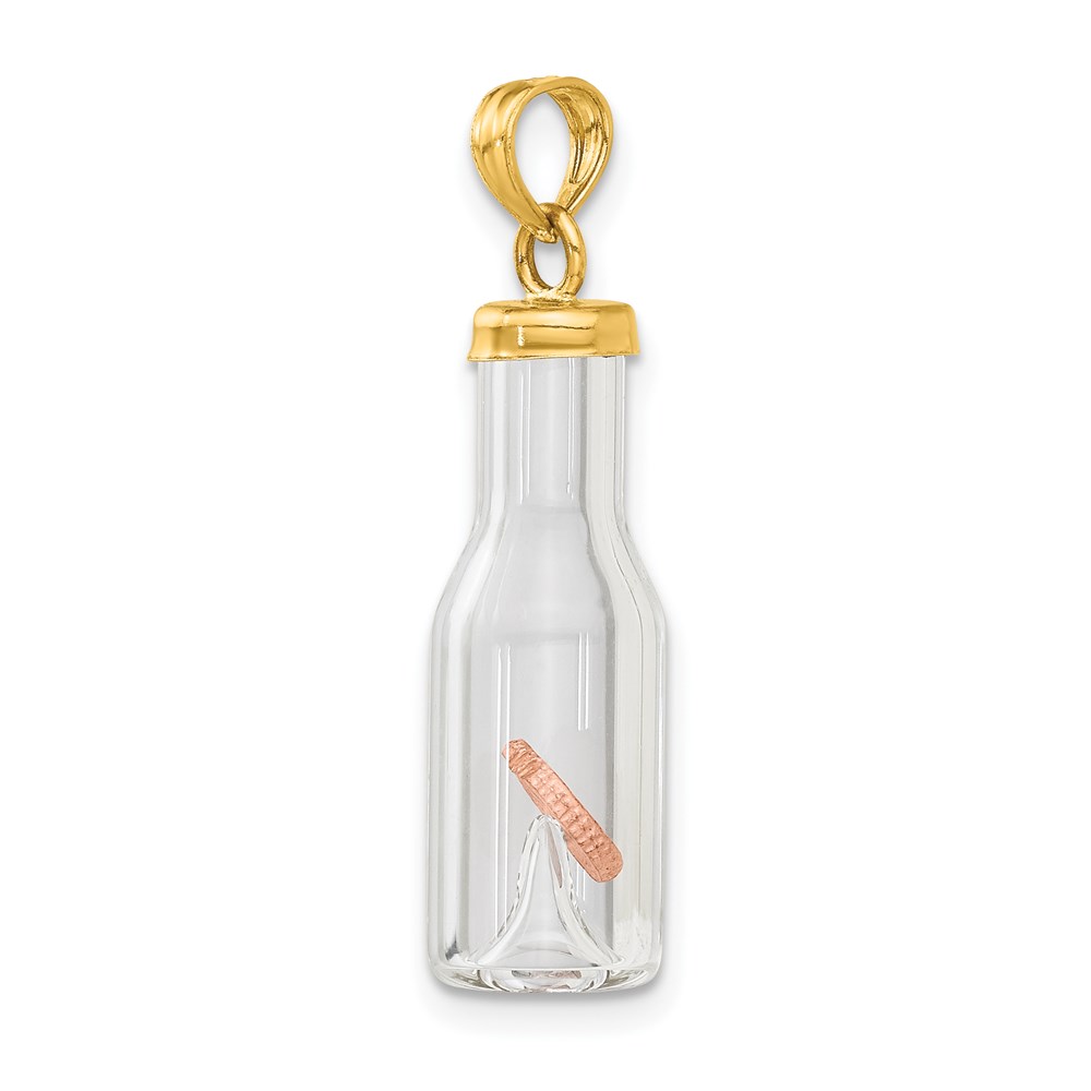14k 3-D Mini Penny in Glass Bottle Pendant