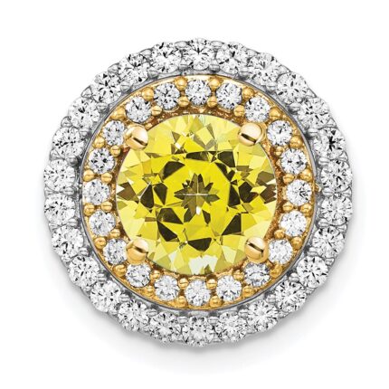 14k White Gold 7mm Cushion Checkerboard November/Citrine and Diamond Pendant