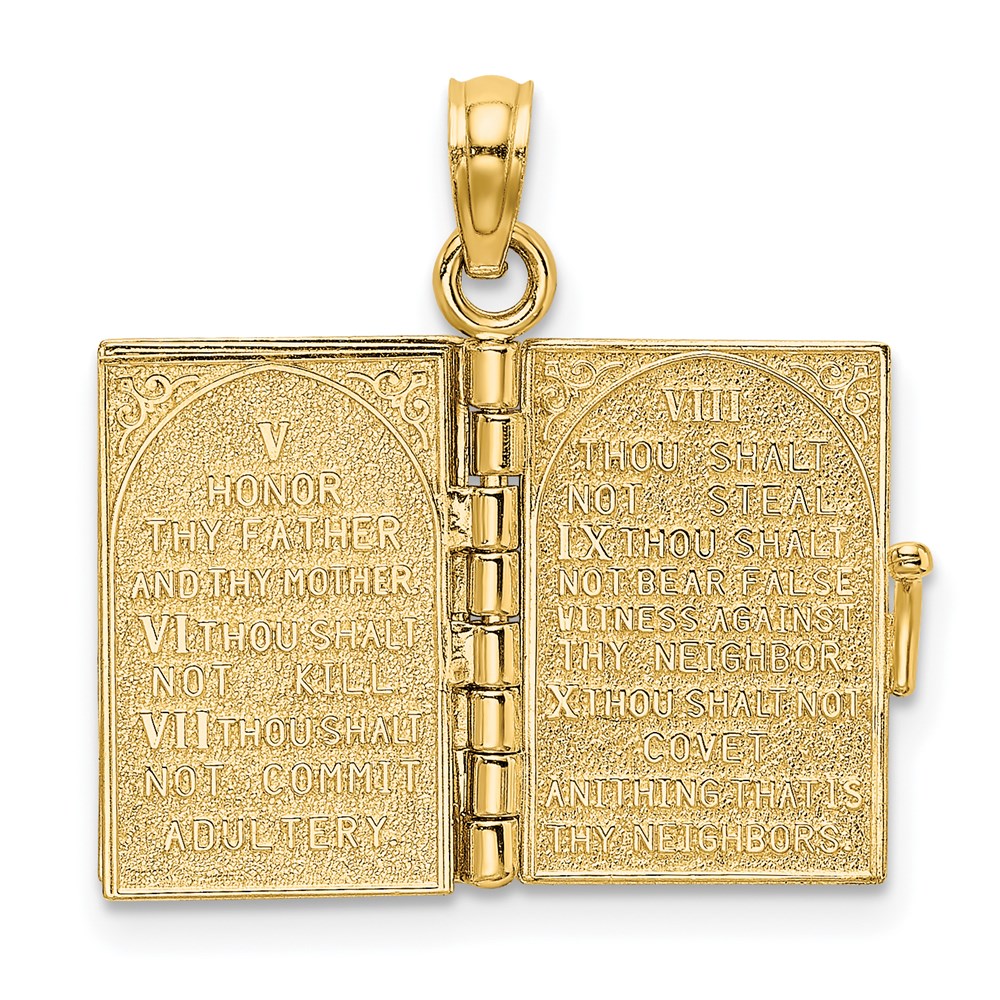14K 3-D THE TEN COMMANDMENTS in Hebrew Book with Moveable Pages Pendant